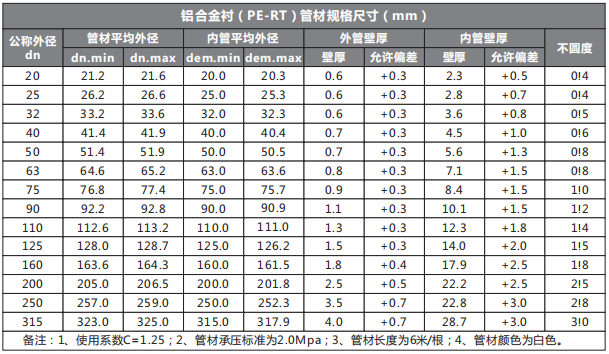 外層鋁合金:外層鋁合金層采用6063航天合金無(wú)縫鋁管,顏色為白色,表面采用高溫噴涂樹脂材料,使外層鋁管不*較強(qiáng)的硬度且提高了鋁合金管耐酸堿、耐腐蝕性能,與建筑墻體顏色一致,永不褪色,永保華麗外觀。內(nèi)層為PE-RT材料。